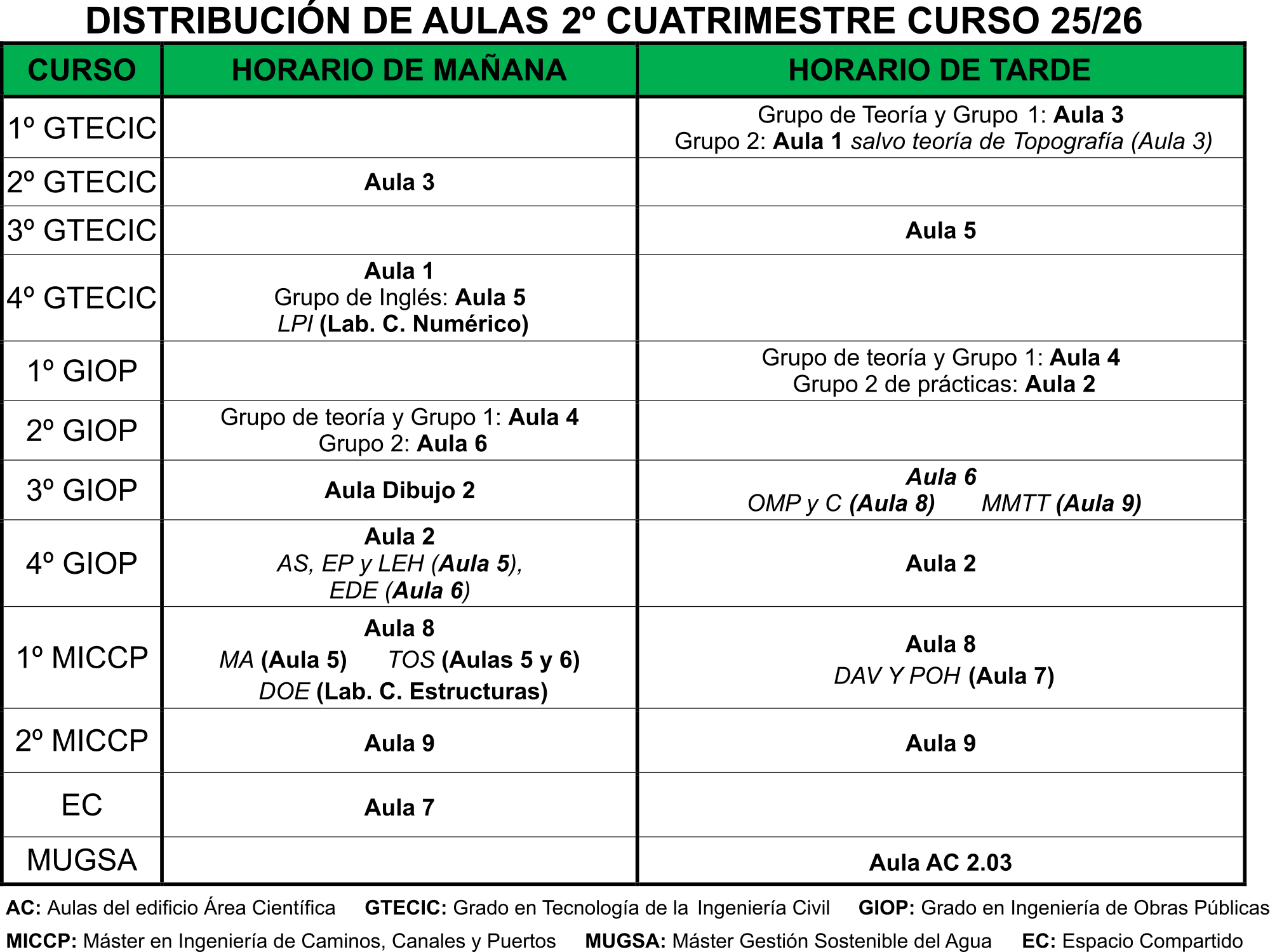 Distribución de aulas